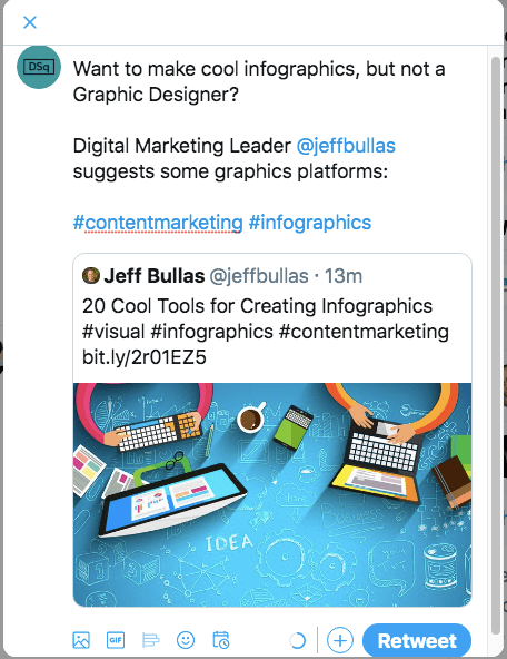 - Use Retweet WITH COMMENT – otherwise you’ll just repost the original and not have any of your own copy in the post.